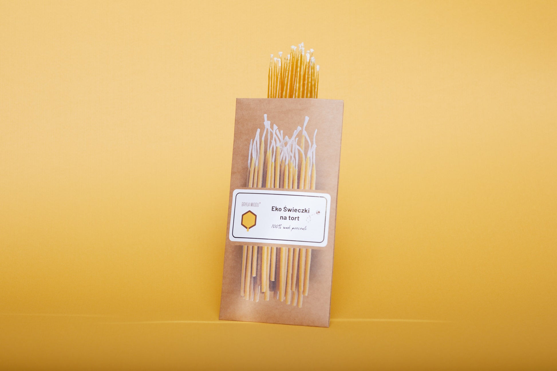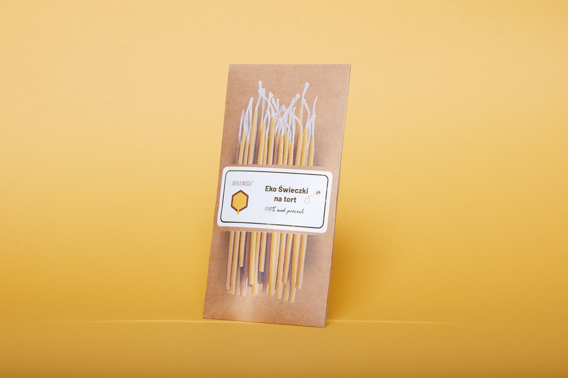 Eko Świeczki na Tort z wosku pszczelego, zestaw 20 szt., naturalne