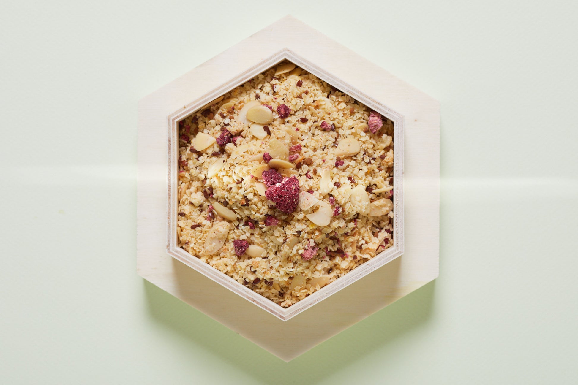 Granola mit Himbeere, Akazienhonig und Bienenpollen