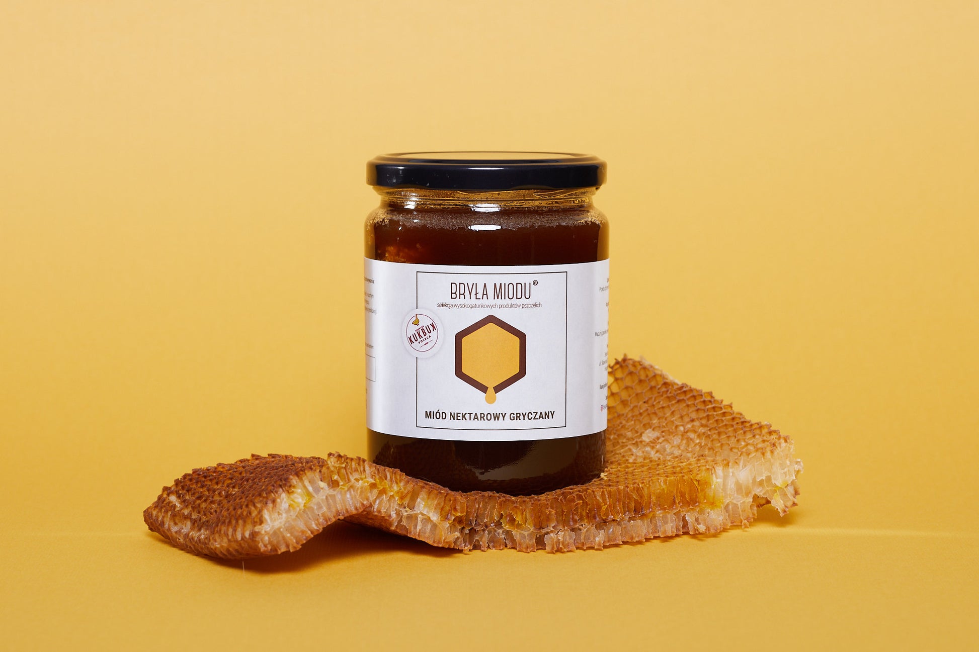 Buchweizenhonig hat eine dunkelbraune, teeähnliche und sogar braune Farbe. Wenn es kristallisiert, hat es eine hellere Farbe und eine krümelige Konsistenz. Bienen gewinnen es aus Buchweizenblüten. Der Honig hat einen würzigen, leicht brennenden Geschmack und ein deutliches Aroma von weißen und rosa Buchweizenblüten. Es ist sicherlich schwierig, ihn mit anderen Honigen zu verwechseln. Im Vergleich zu anderen Blütenhonigen weist er den höchsten Gehalt an Immunstoffen auf. Es beinhaltet außerdem: