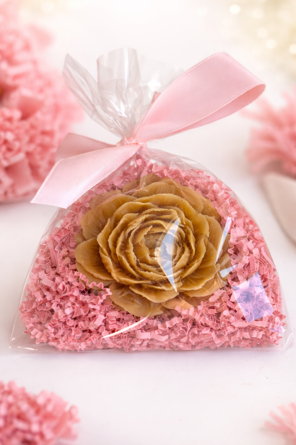 - Świeca w kształcie kwiatu piwonii – subtelna dekoracja i naturalny zapach miodu.